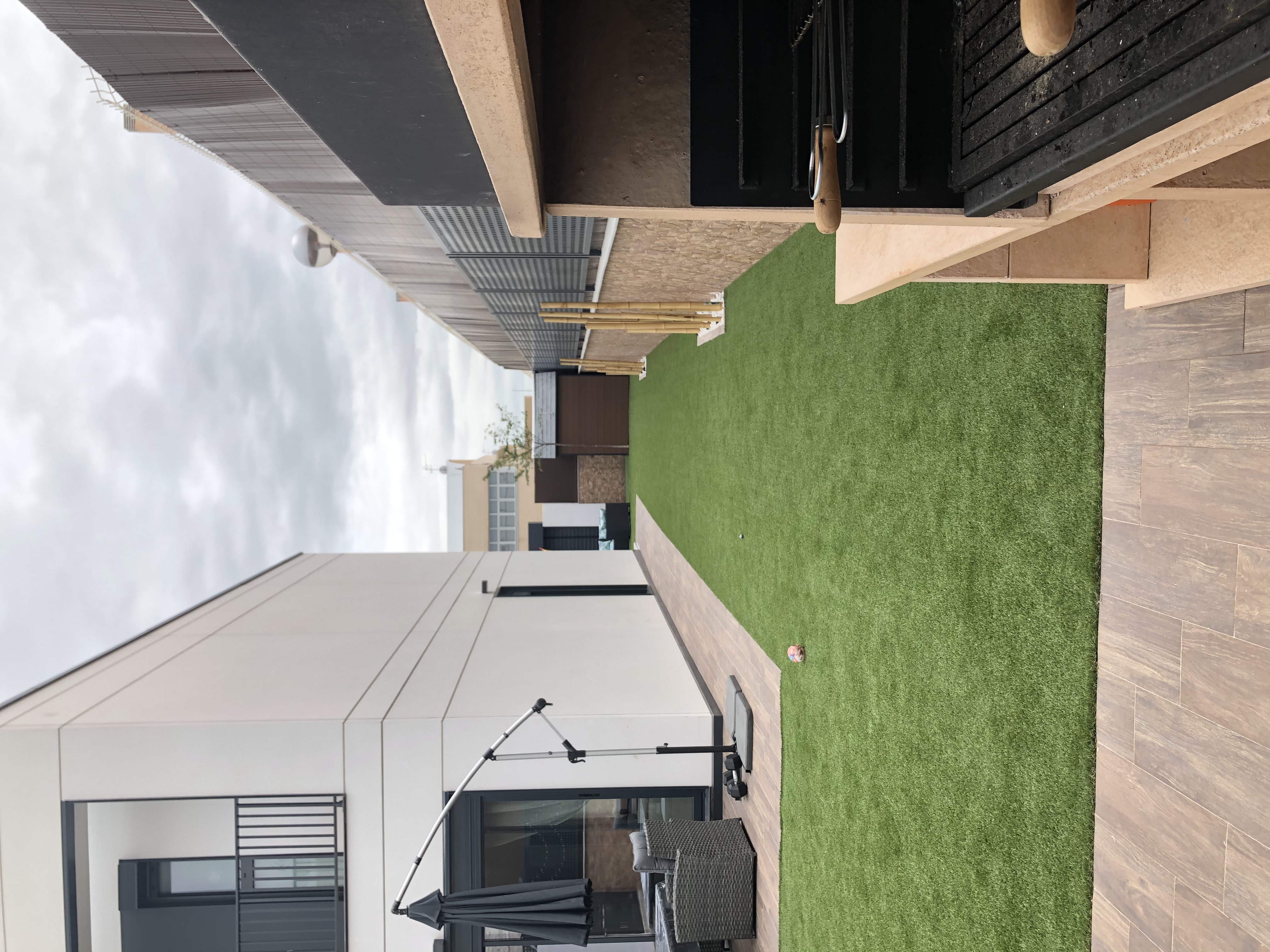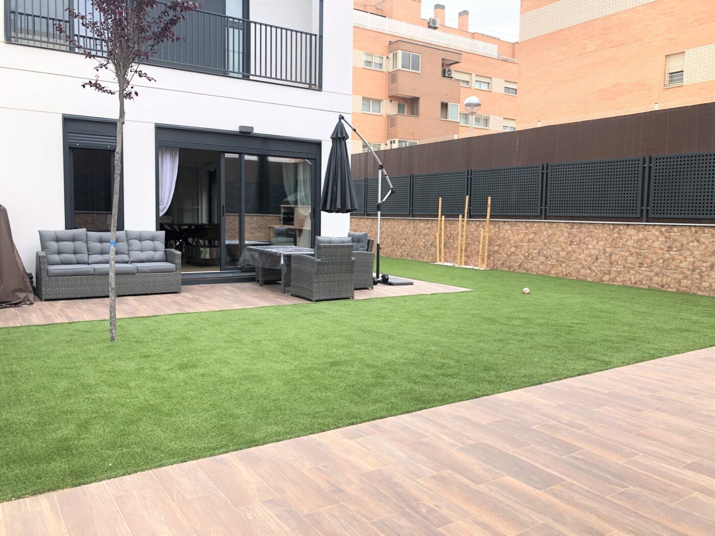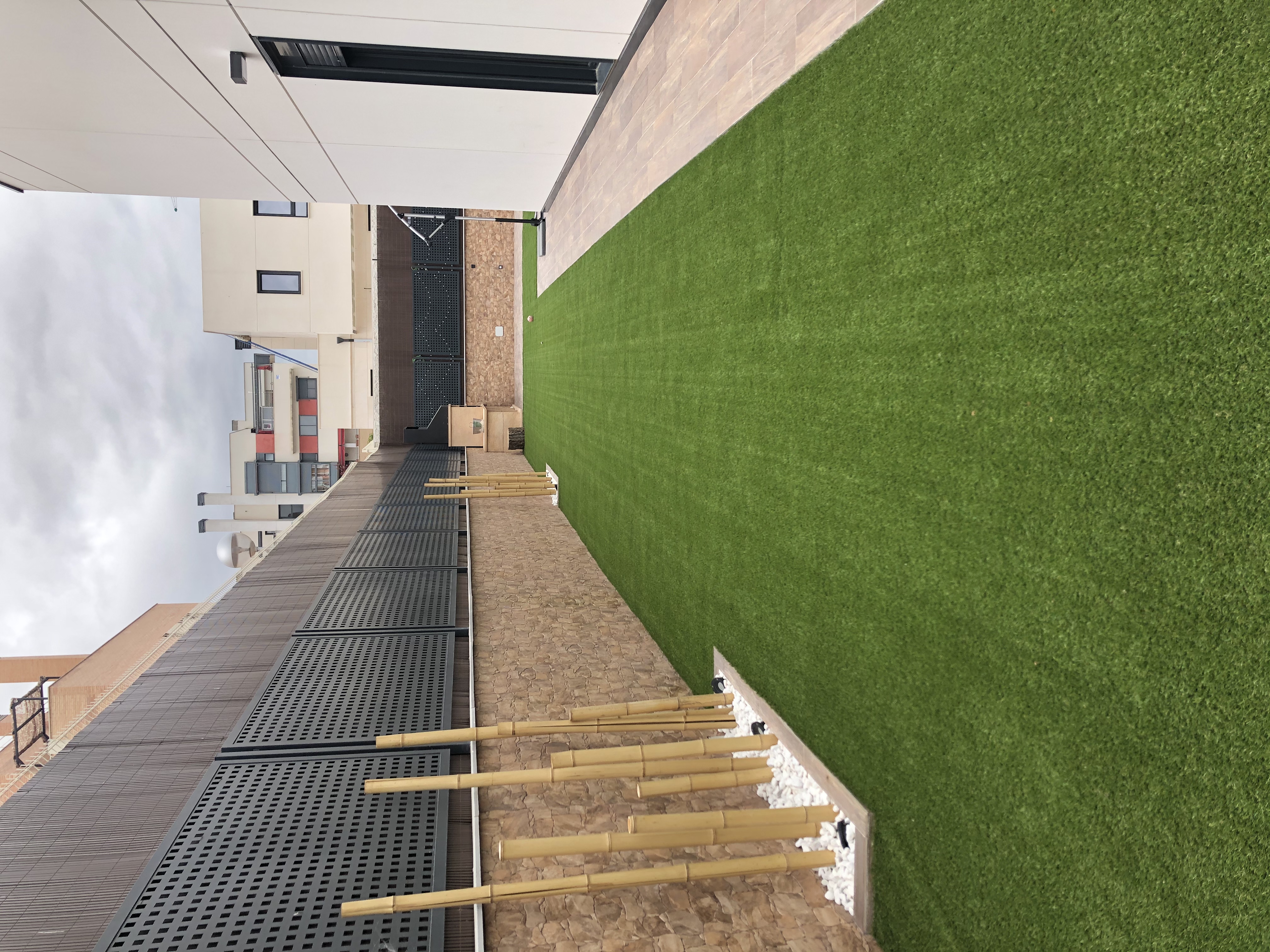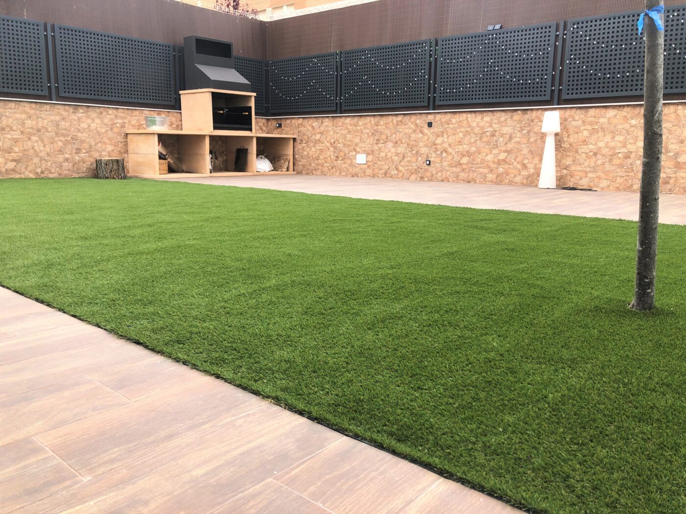 Para hacerlo aún más agradable, se instaló césped artificial, aportando así, color y calidez al jardín.